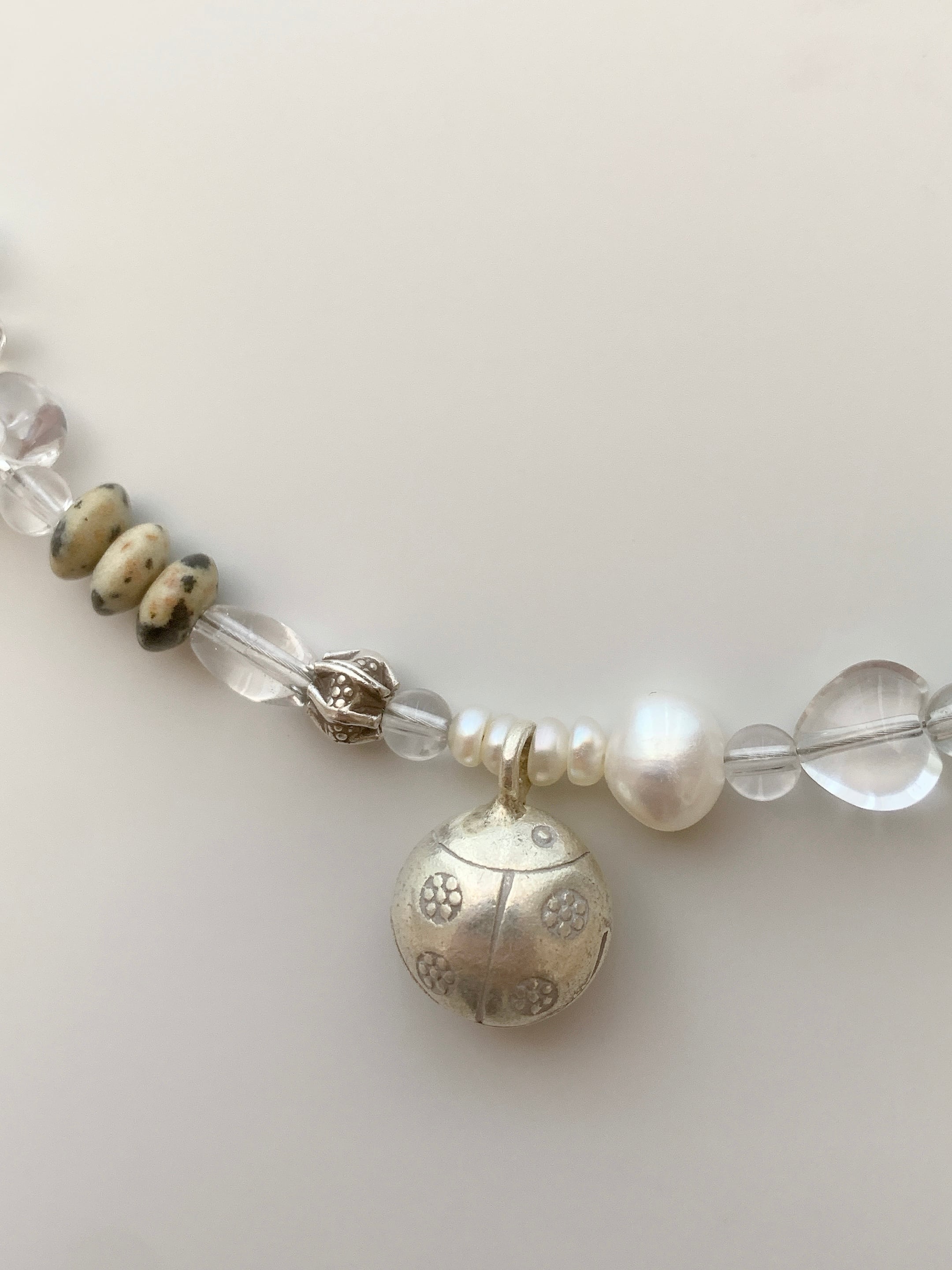 silver925、淡水パール、カレンシルバー、ガラスビーズ、天然石(クリスタル、ダルメシアンジャスパー)